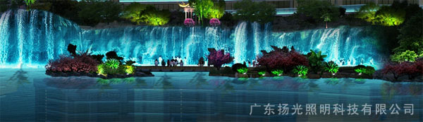 燈具選擇:依據(jù)瀑布的高度和水量進(jìn)行選擇,水量小的瀑布,LED投光燈燈具設(shè)置在流水的前方將水幕點(diǎn)亮;對(duì)于水量較大的瀑布,將燈具設(shè)置在落水出,這樣水的動(dòng)態(tài)效果會(huì)讓光線變得更加絢爛。落差小的瀑布,采用寬光束的燈具向上照射;對(duì)落差大的瀑布,使用功率大和光束窄的燈具。