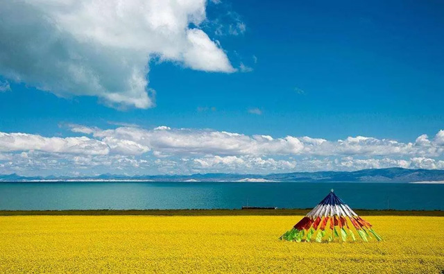 經(jīng)過日月山,到達(dá)青海湖。青海湖又名“措溫布”,即藏語“青色的?!敝?,位于青海省西北部的青海湖盆地內(nèi),既是中國最大的內(nèi)陸湖泊,也是中國最大的咸水湖。由祁連山的大通山、日月山與青海南山之間的斷層陷落形成。
