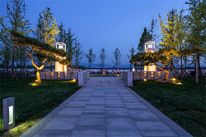 一、在所有的景觀中,水景燈光是夜間照明的重要部分。夜間水景是燈光照射下的廣場景觀中最具魔幻的部分,可以在水體邊緣布置光線柔和的庭院燈,也可利用燈光的透射將岸邊樹木的倒影映射到水面上,從而獲得奇妙的水景效果。
