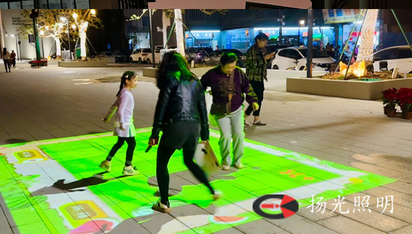 投影互動(dòng):利用投影設(shè)備將虛擬元素投射到地面或建筑物上,游客可以通過與虛擬元素的互動(dòng)來(lái)改變燈光效果。例如,游客可以在地面上踩踏虛擬元素,使其消失或變化。