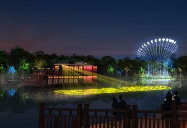 通過燈光可以改善游輪碼頭視線范圍,以增強(qiáng)整個湖岸夜景的燈光效果,從而使“水、樹、陰影”融入燈光中的景觀帶中,創(chuàng)建夢幻般的港灣夜景。